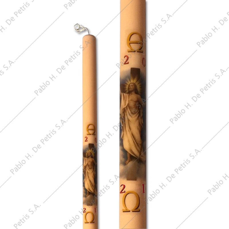 Cirio pascual, nacional, de 6 libras. Decorado con autoadhesivos.
