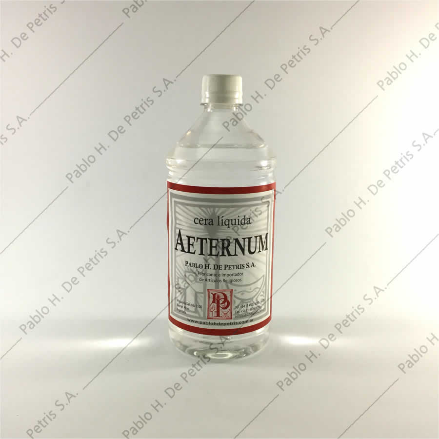 Botella de 1 litro de cera líquida. Excelente rendimiento, con un litro de cera líquida "Aeternum" la vela permence encendida aproximadamente 211 horas.
