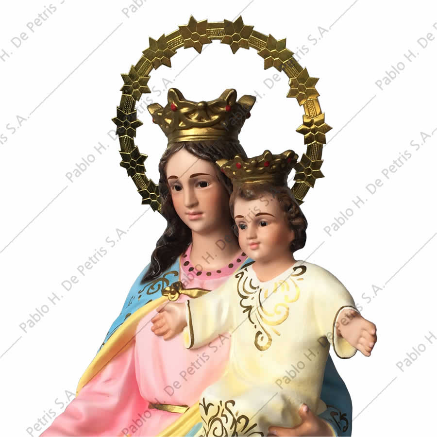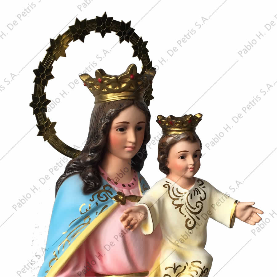 Imagen realizada en pasta. Pintada a mano al óleo en sus colores tradicionales. Ojos de cristal. Aureola de bronce.