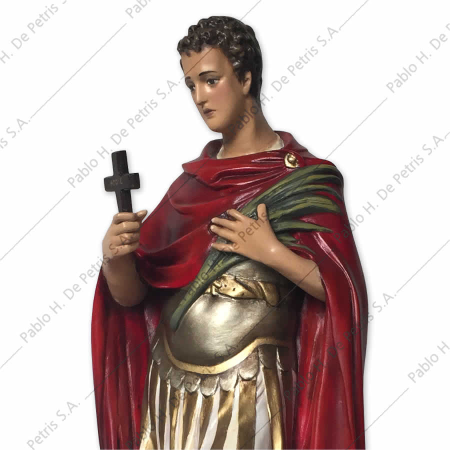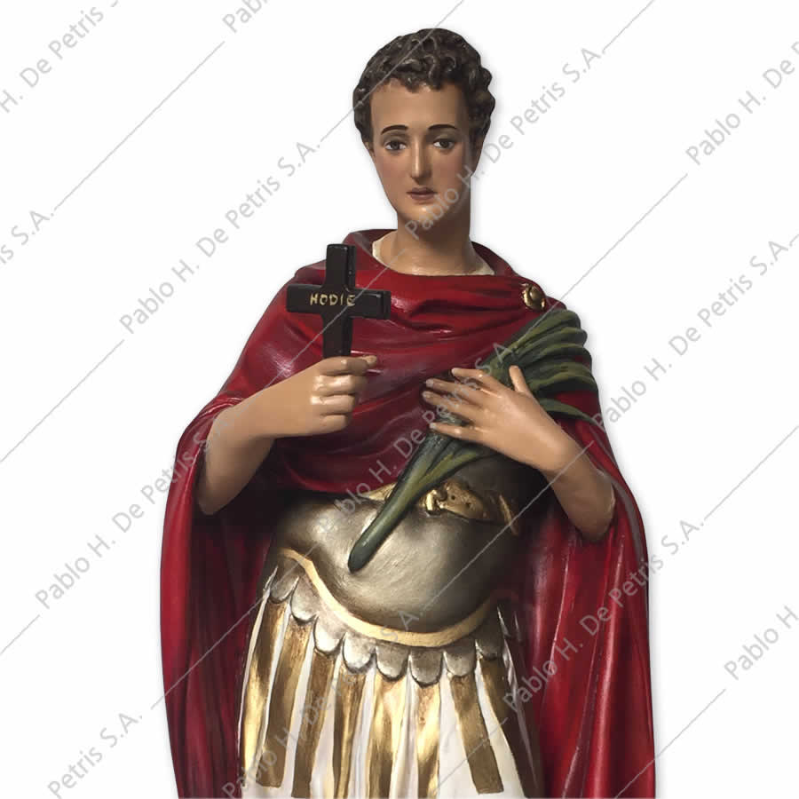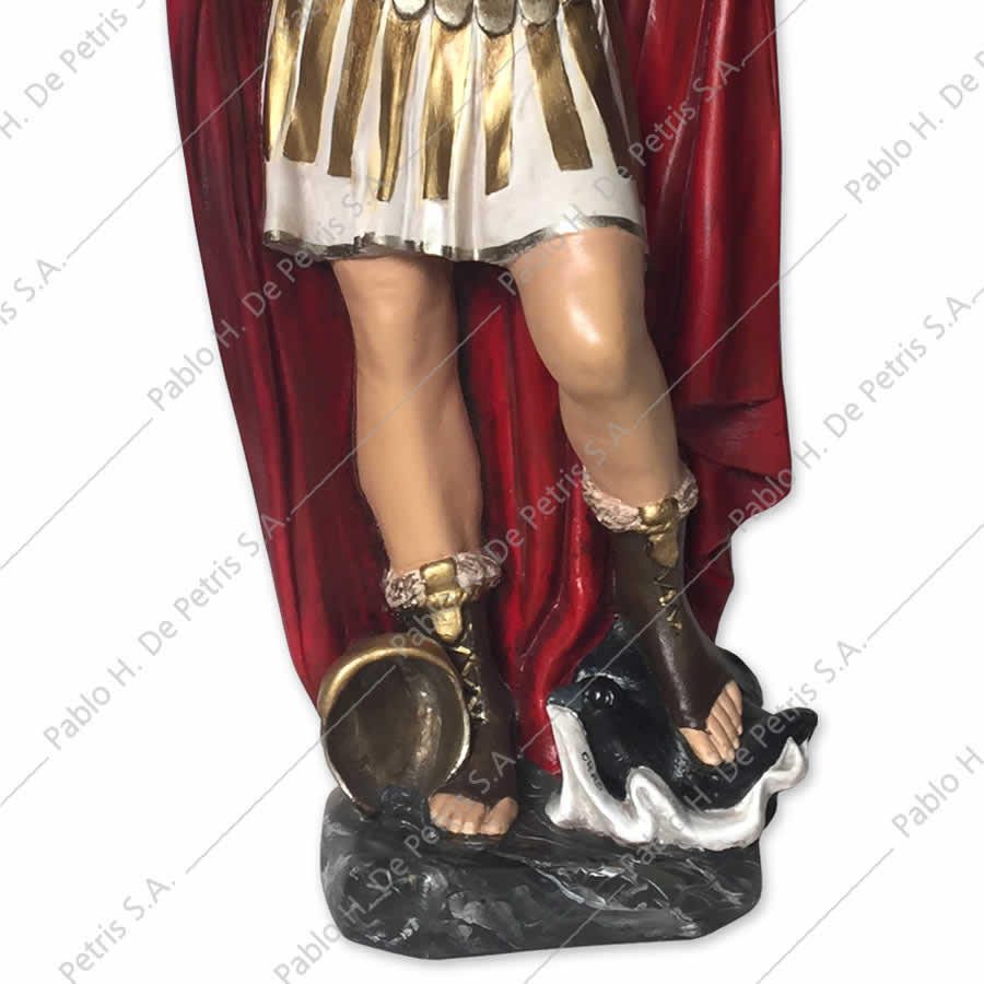 Moldeada en resina, realizada en nuestro taller. Terminada y decorada a mano. Incluye aureola de lámina de bronce.