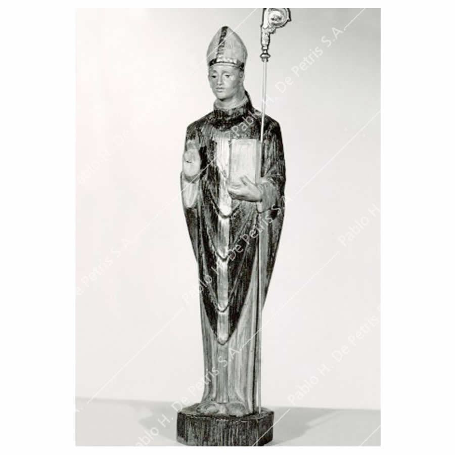 Imagen realizada en pasta madera y pintada a mano al óleo en sus colores tradicionales. Ojos de cristal. Aureola de bronce.