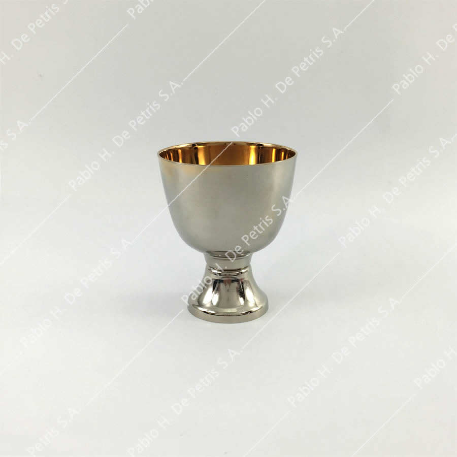 Cáliz realizado en bronce. Interior bañado en oro. Exterior niquelado.
