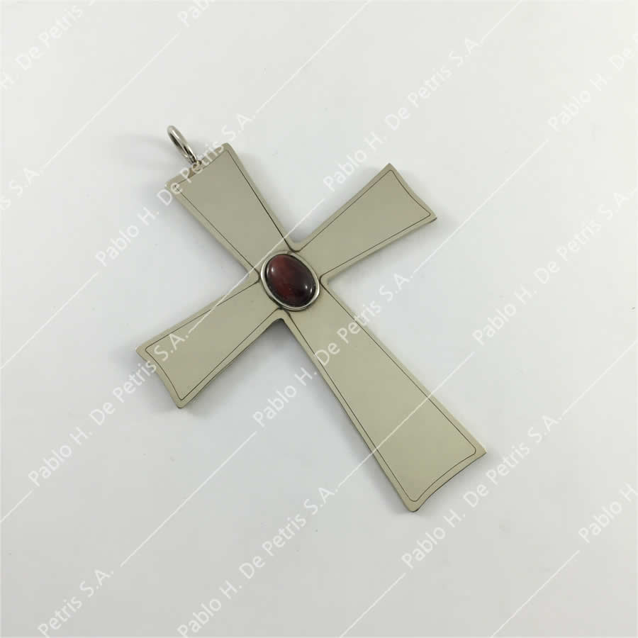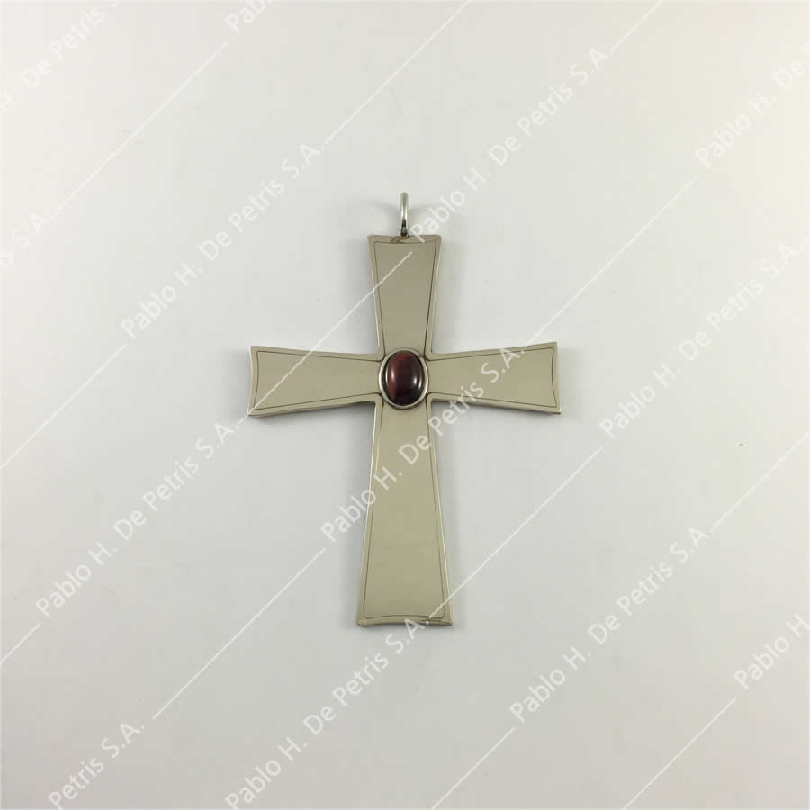 Cruz de manufactura nacional. Realizada en alpaca pulida.