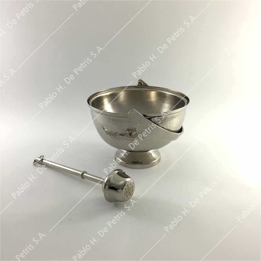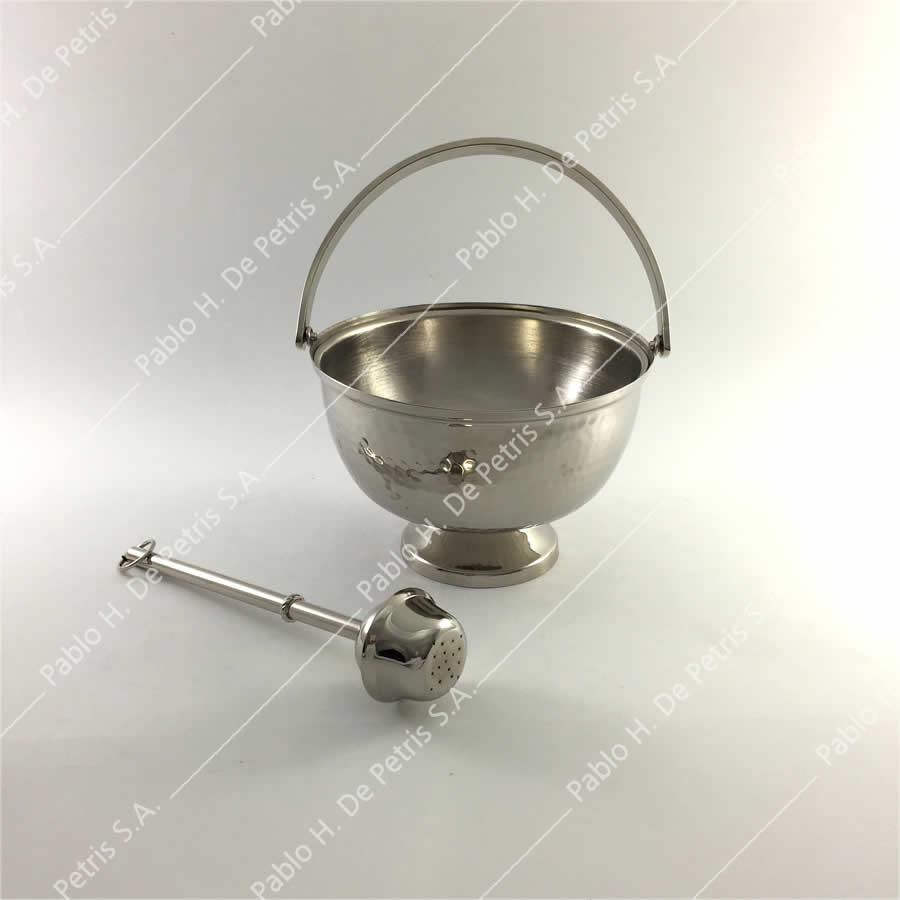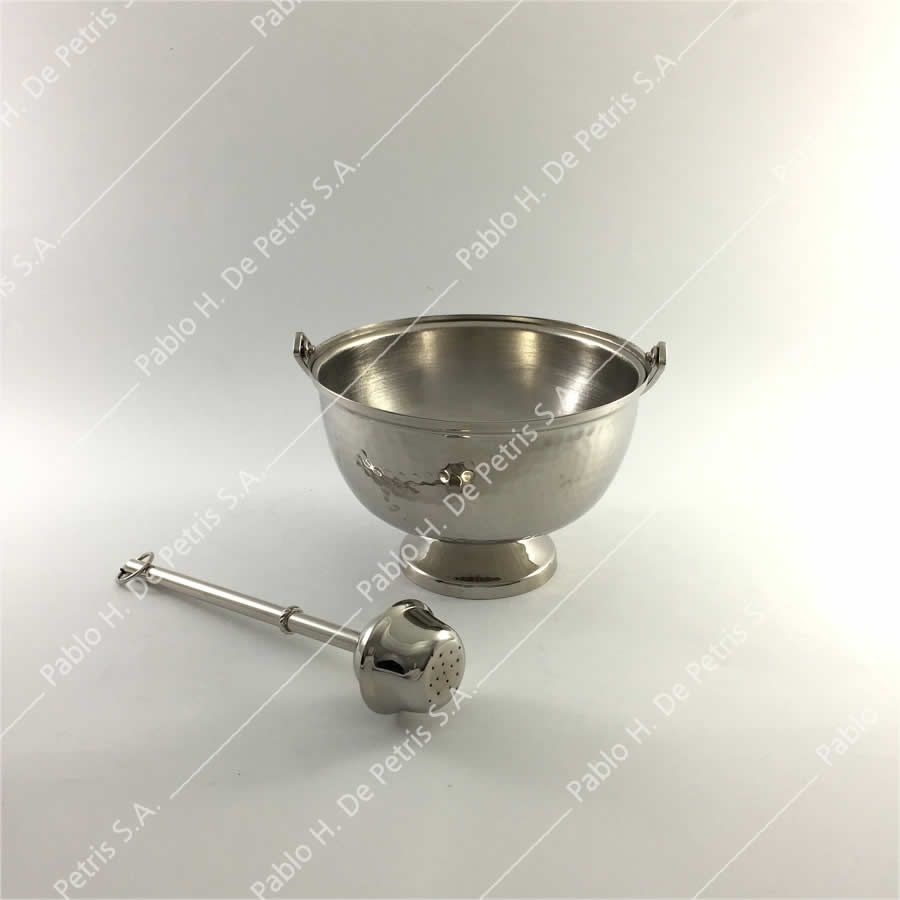 Realizado en bronce niquelado con trabajo martelé. Incluye aspersor.