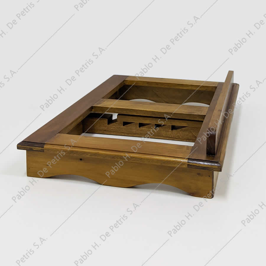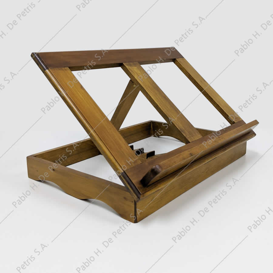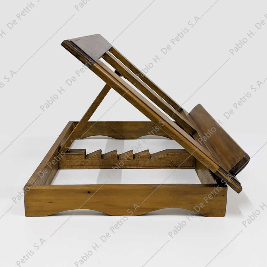 Realizado en madera petiribí. Posición descanso + 5 ángulos de lectura. Plegable.