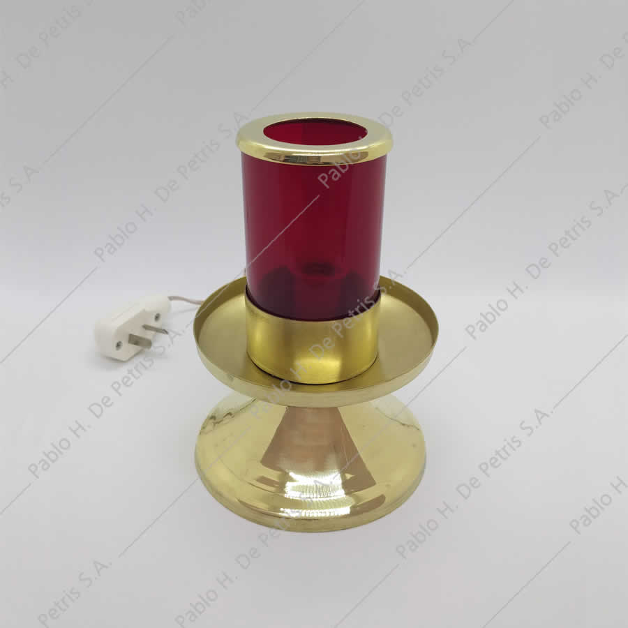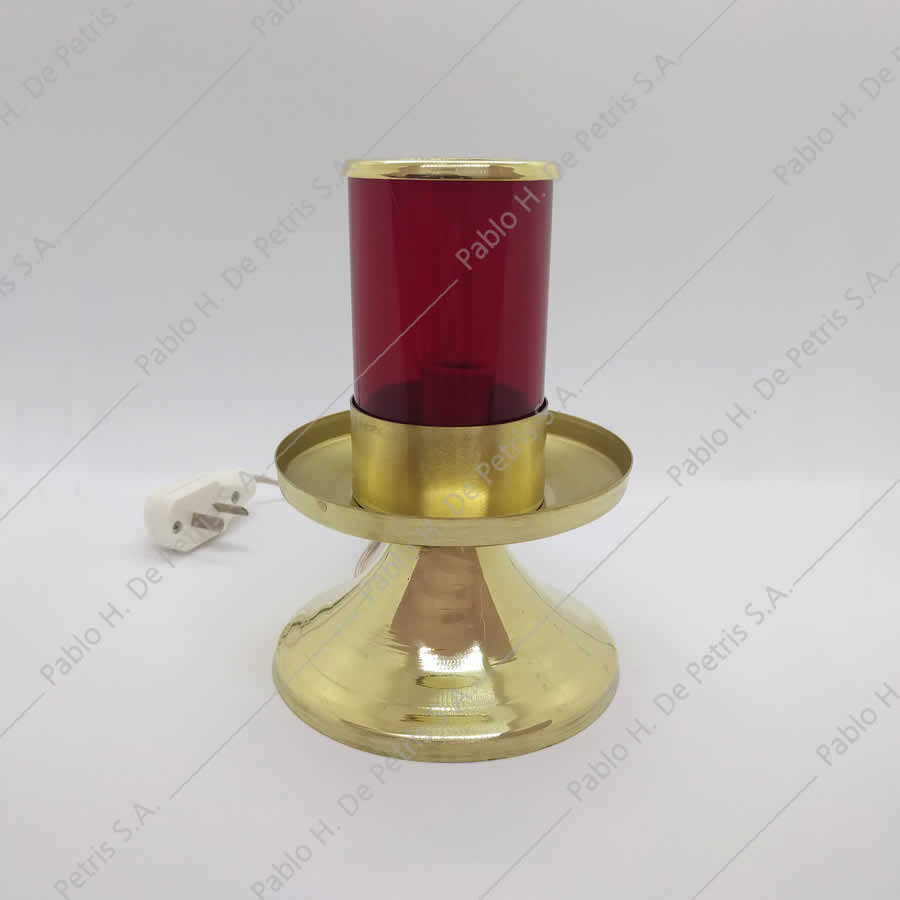 Lámpara eléctrica para apoyar. Realizada en bronce con terminación pulido a su color. Incluye lamparita con efecto de llama.