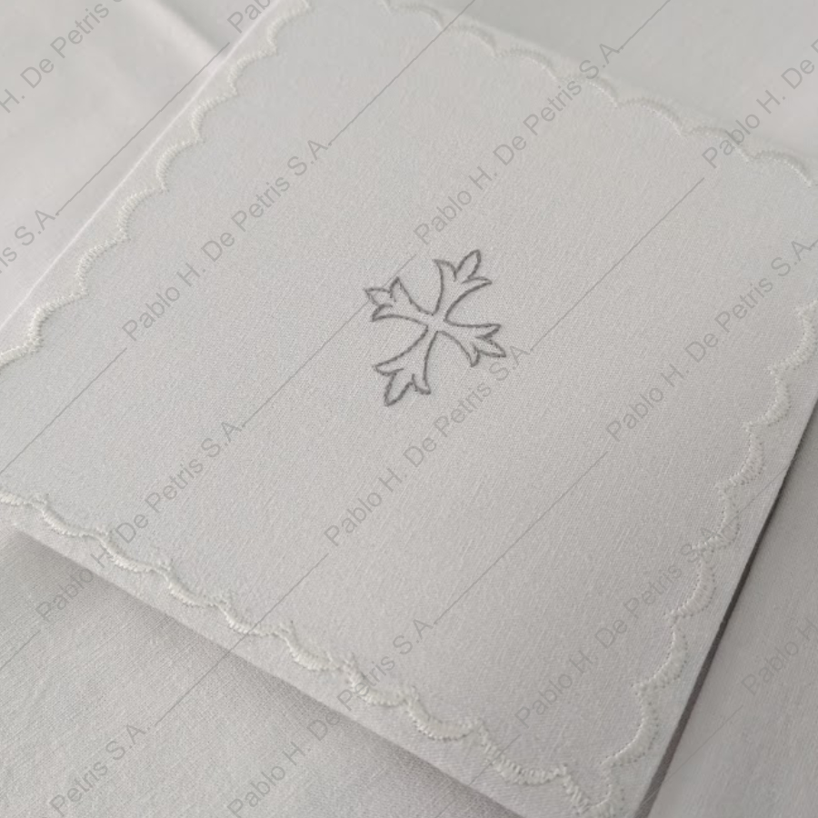 Realizado en tejido puro algodón, con motivo bordado en todos los paños. Terminación con bordado en hilo blanco.