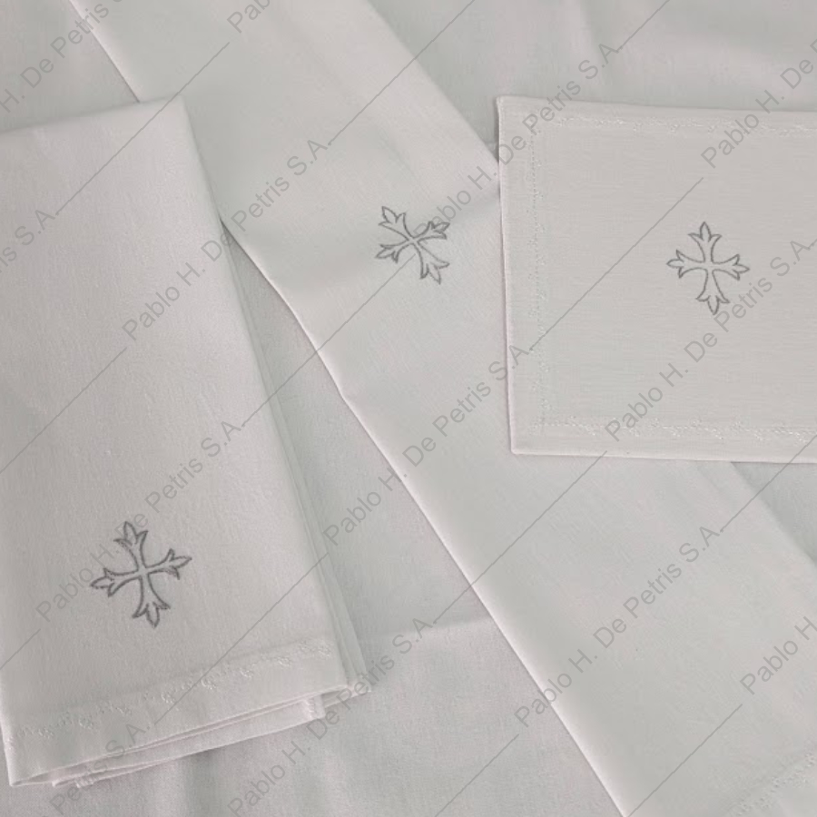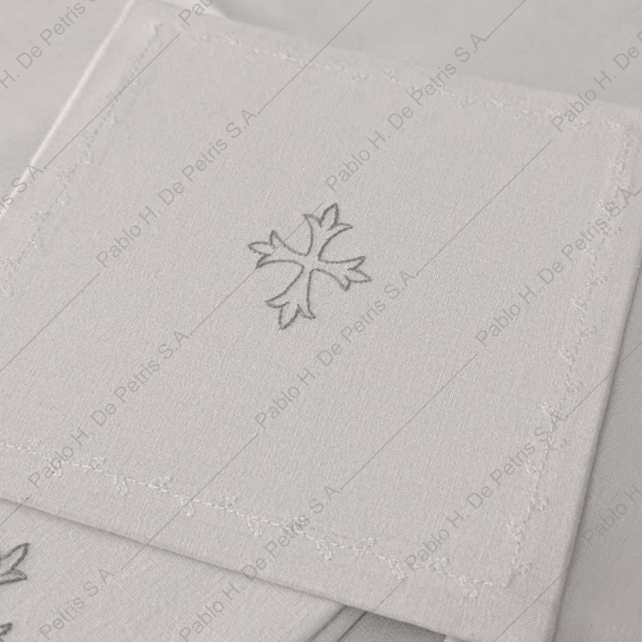 Realizado en tejido puro algodón, con motivo bordado en todos los paños. Terminación con costura de trama en hilo blanco.