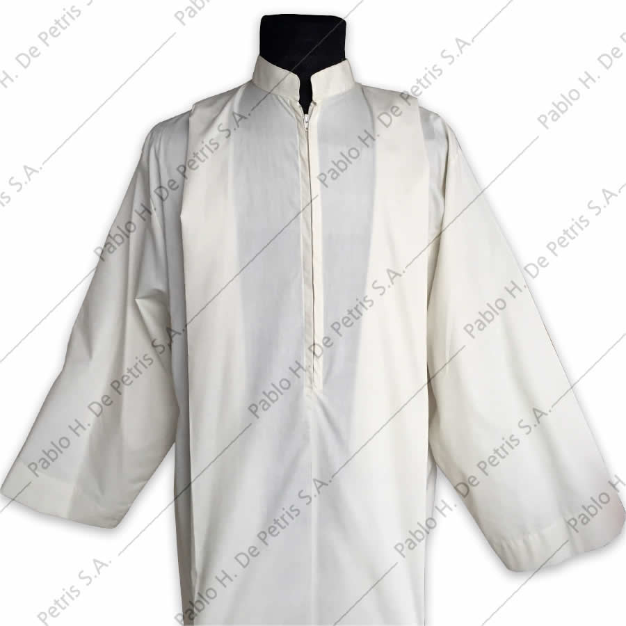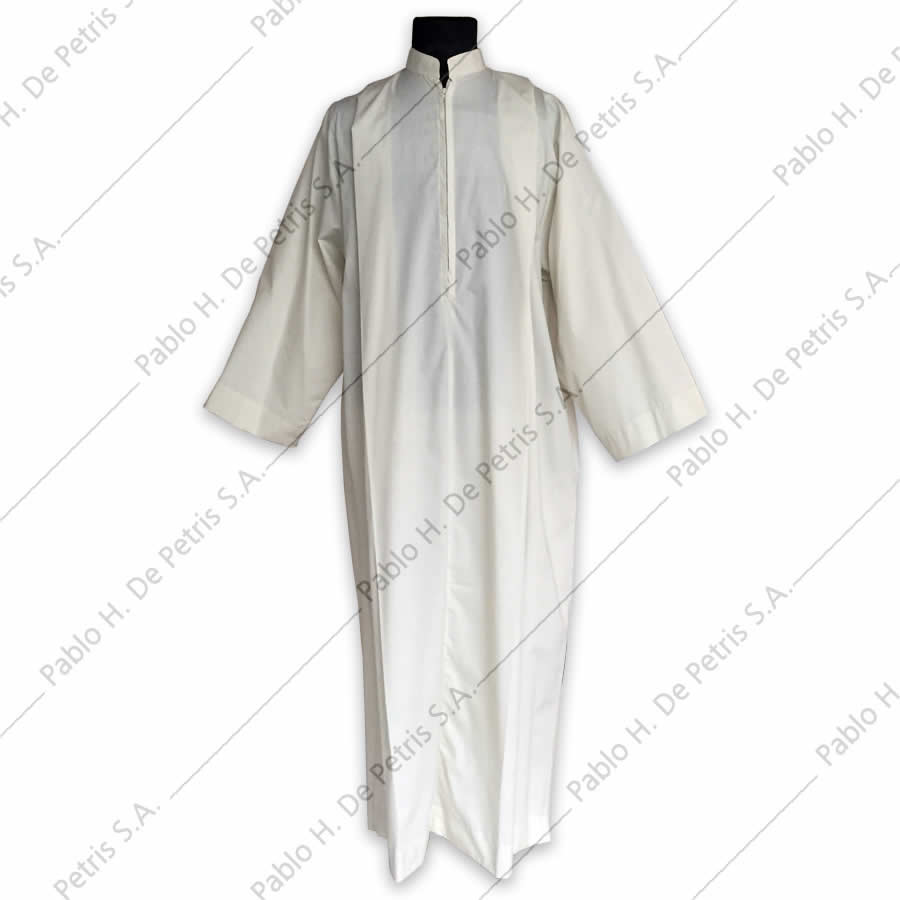 Alba con tablón. Realizada en mezcla de tejido natural y sintético. Color beige.