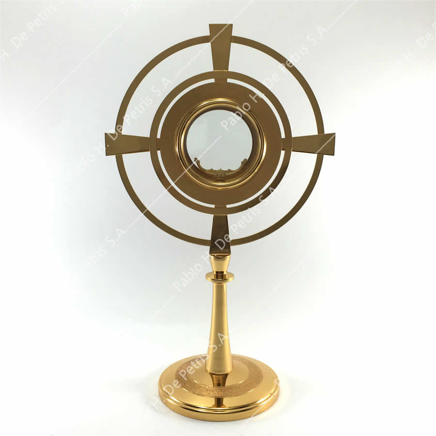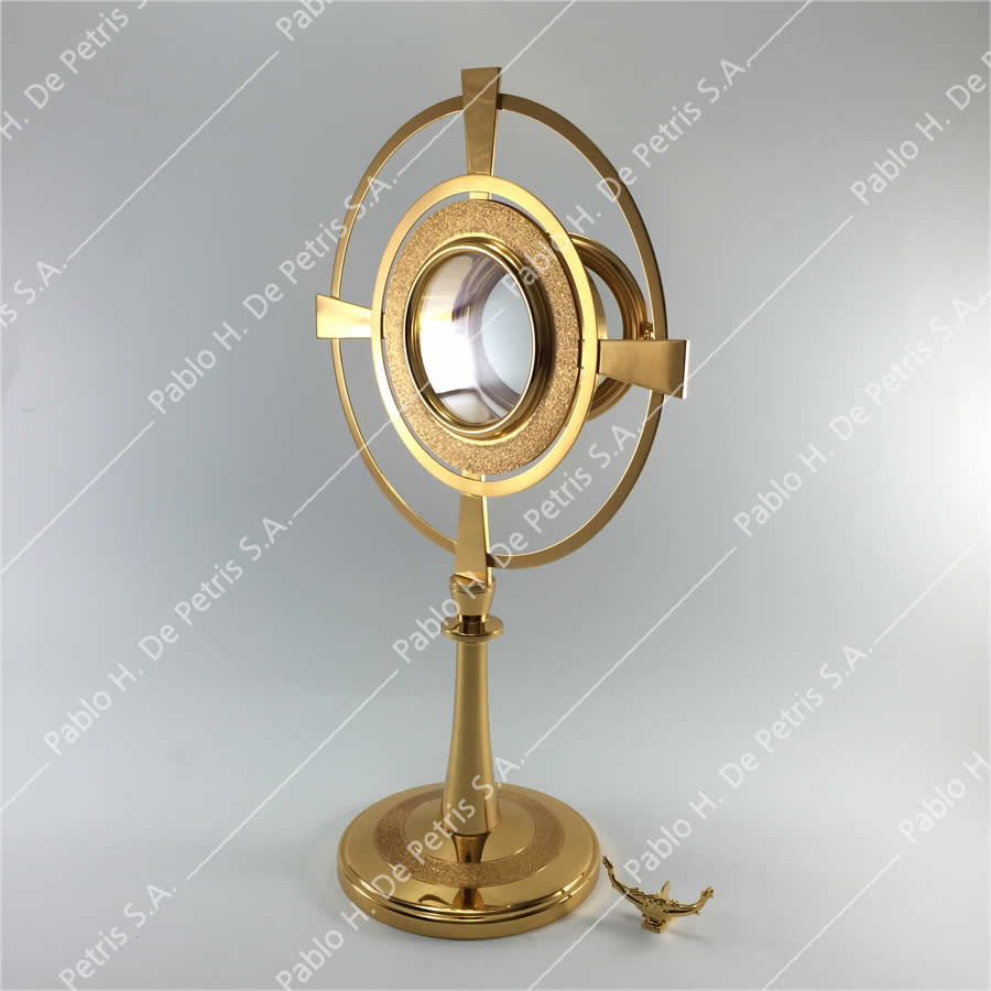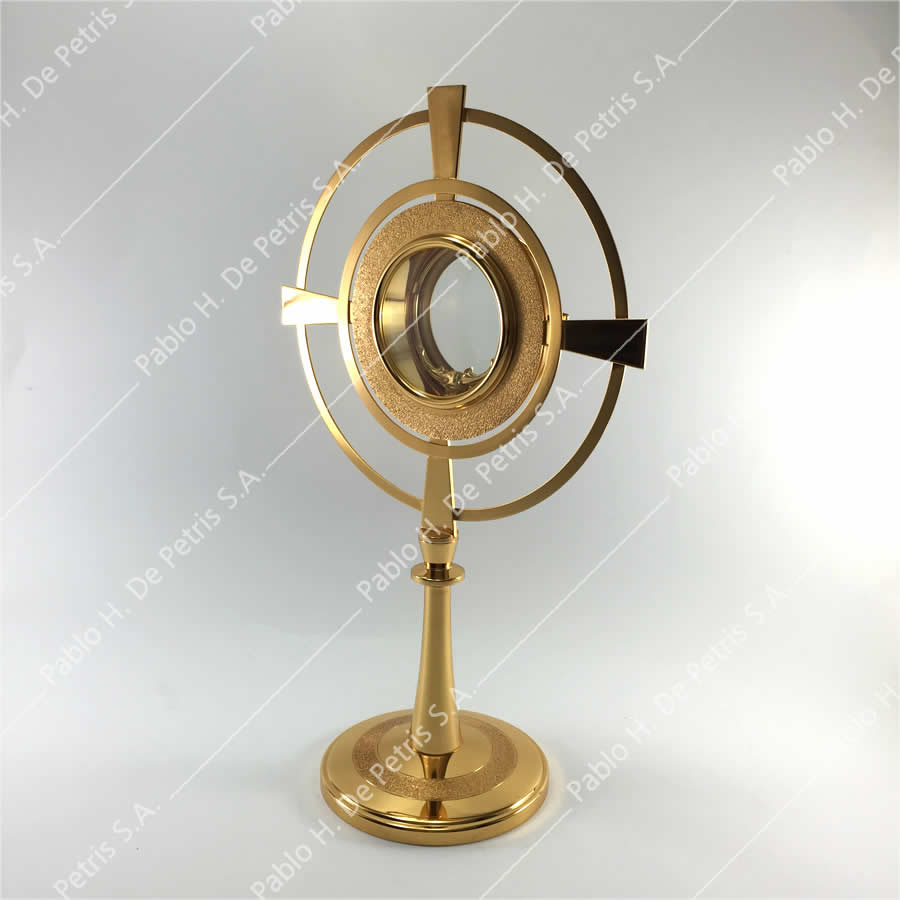 Realizada en bronce con interior y exterior bañados en oro. Viril bañado en oro, removible para poder transportarlo.