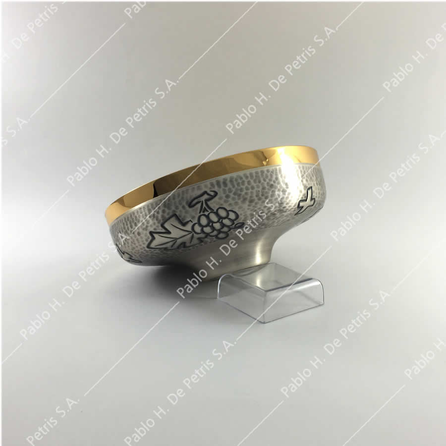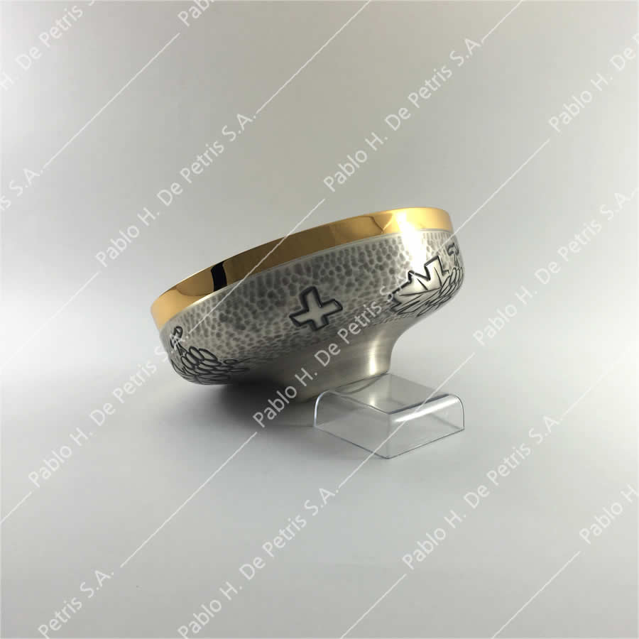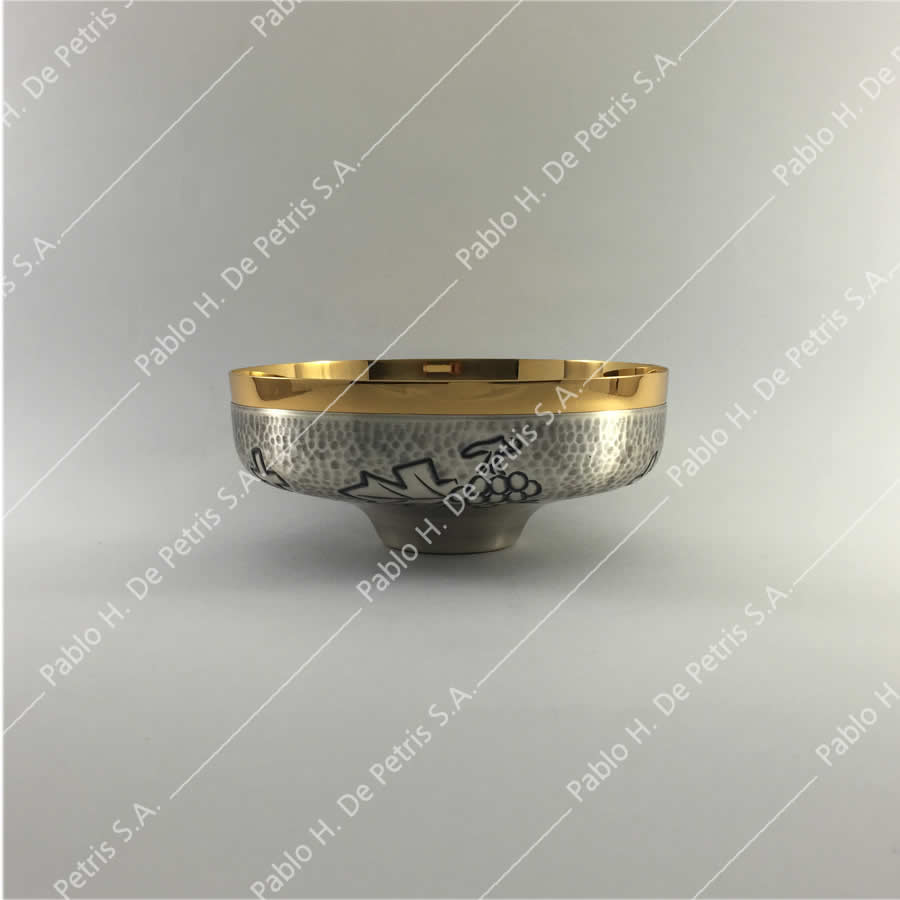 Panera realizada en bronce con baño interior en oro y exterior bañada en plata con ornamentación cincelada.