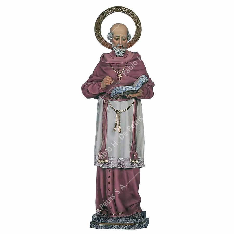 Imagen realizada en pasta madera. Pintada a mano al óleo en sus colores tradicionales. Ojos de cristal. Aureola de bronce.