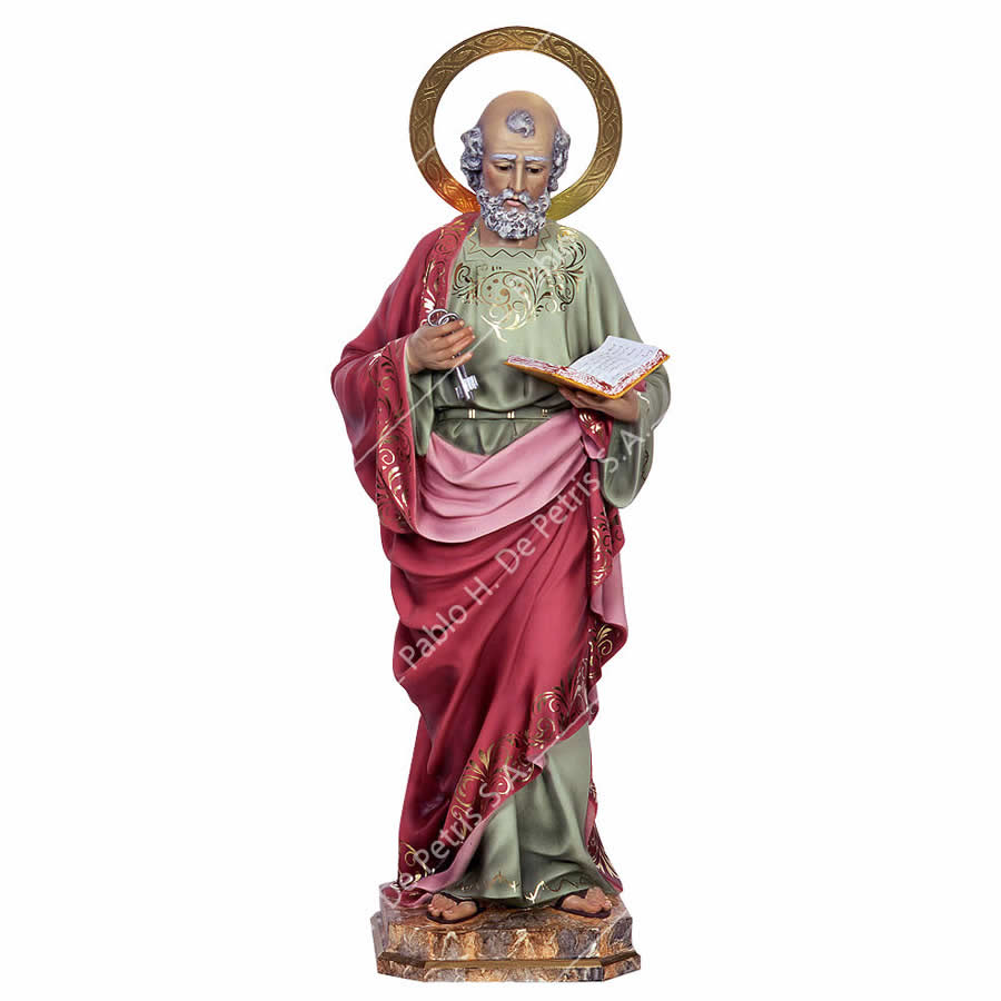 Imagen realizada en pasta madera. Pintada a mano al óleo en sus colores tradicionales. Ojos de cristal. Aureola de bronce.