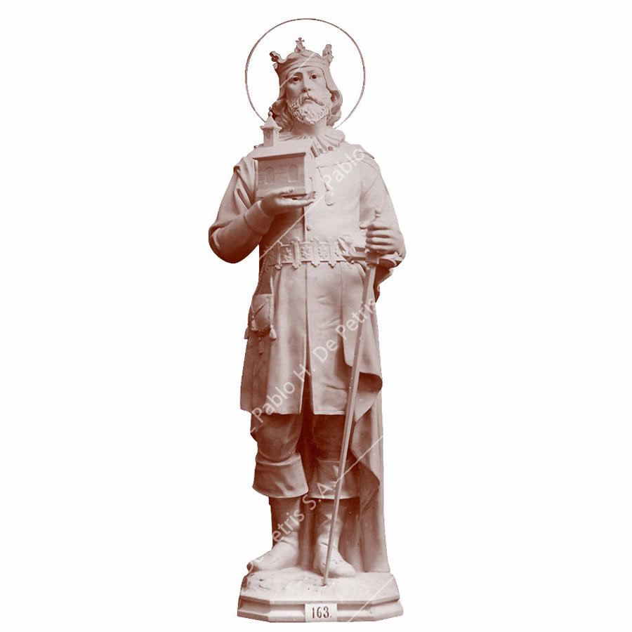 Imagen realizada en pasta madera. Pintada a mano al óleo en sus colores tradicionales. Ojos de cristal. Aureola de bronce.