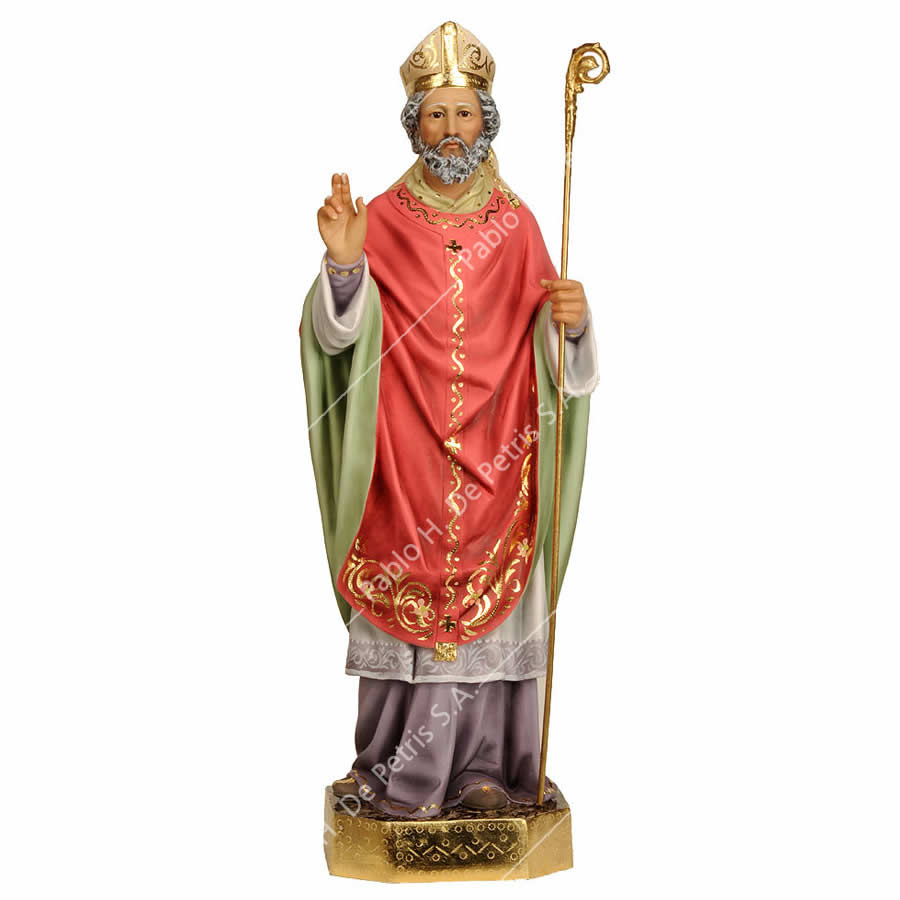 Imagen realizada en pasta madera. Pintada a mano al óleo en sus colores tradicionales. Ojos de cristal. Aureola de bronce.