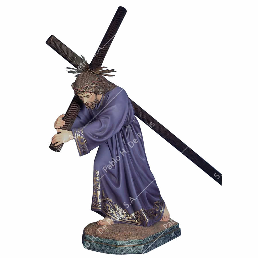 Imagen realizada en pasta madera. Pintada a mano al óleo en sus colores tradicionales. Ojos de cristal. Aureola de bronce.