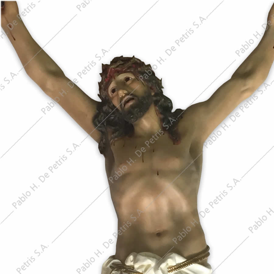 Imagen realizada en pasta madera y pintada a mano al óleo. Ojos de cristal.