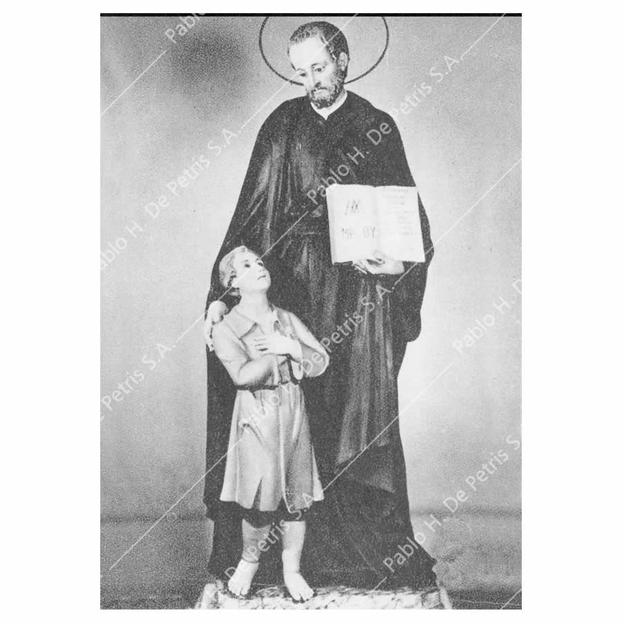 Imagen realizada en pasta madera. Pintada a mano al óleo en sus colores tradicionales. Ojos de cristal. Aureola de bronce.