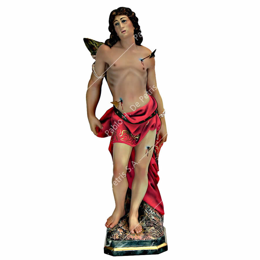 Imagen realizada en pasta madera y pintada a mano al óleo en sus colores tradicionales. Ojos de cristal. Aureola de bronce.