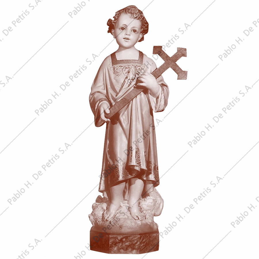 Imagen realizada en pasta madera. Pintada a mano al óleo en sus colores tradicionales. Ojos de cristal. Aureola de bronce.