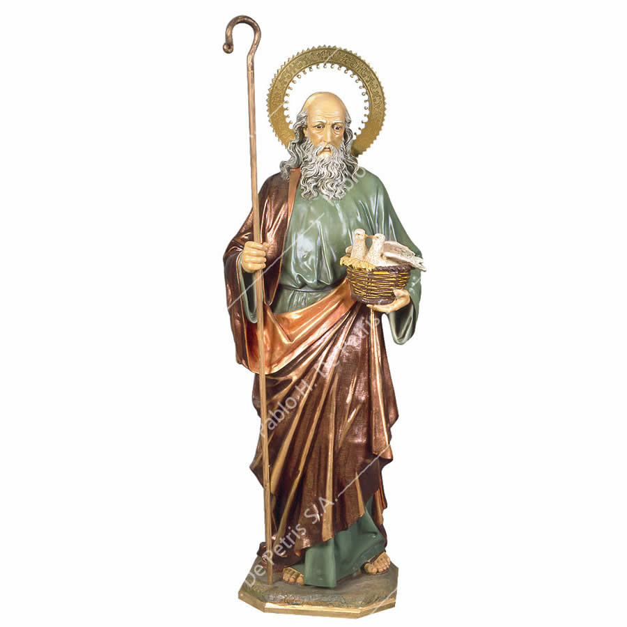 Imagen realizada en pasta madera y pintada a mano al óleo en sus colores tradicionales. Ojos de cristal. Aureola de bronce.