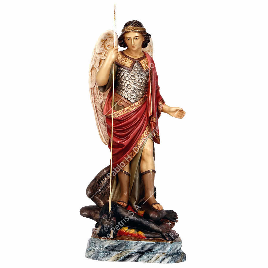 Imagen realizada en pasta madera y pintada a mano al óleo en sus colores tradicionales. Ojos de cristal. Aureola de bronce.