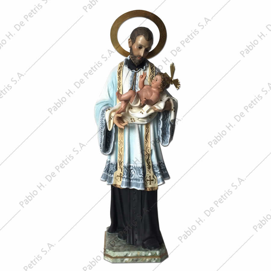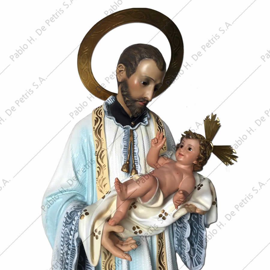 Imagen realizada en pasta madera y pintada a mano al óleo en sus colores tradicionales. Ojos de cristal. Aureola de bronce.