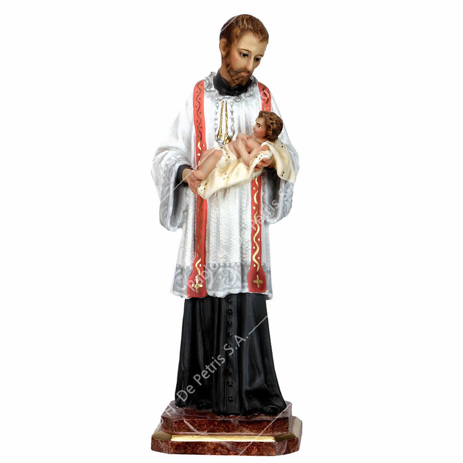 Imagen realizada en pasta madera y pintada a mano al óleo en sus colores tradicionales. Ojos de cristal. Aureola de bronce.