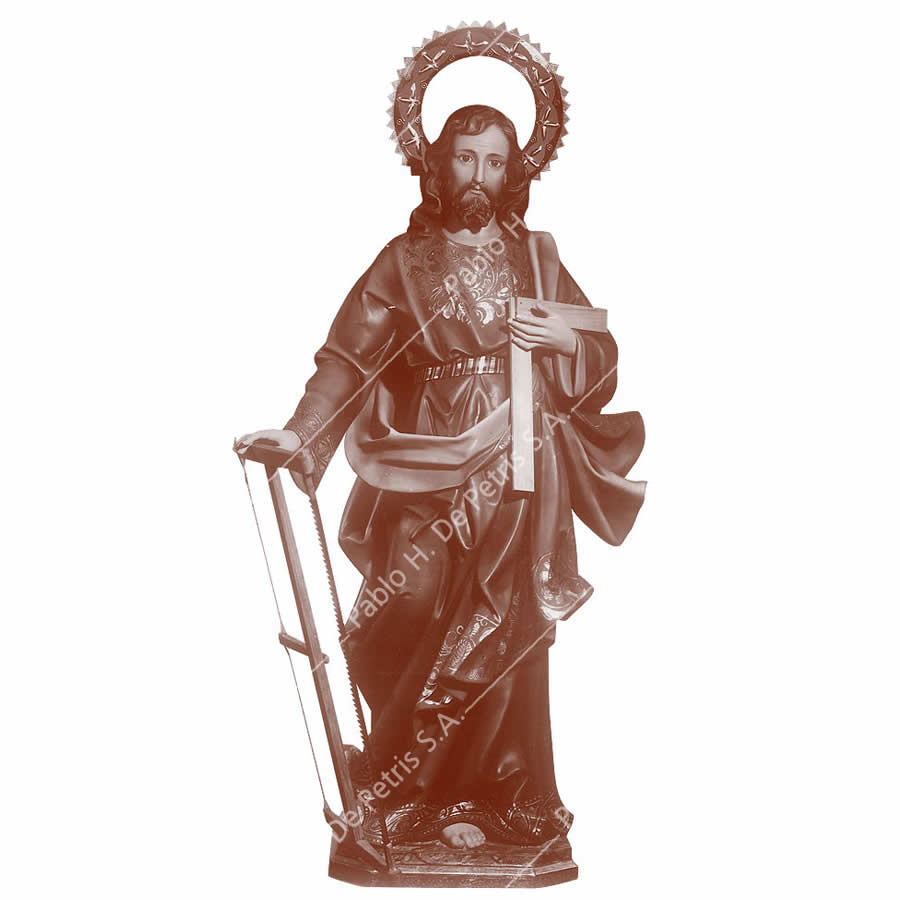 Imagen realizada en pasta madera. Pintada a mano al óleo en sus colores tradicionales. Ojos de cristal. Aureola de bronce.