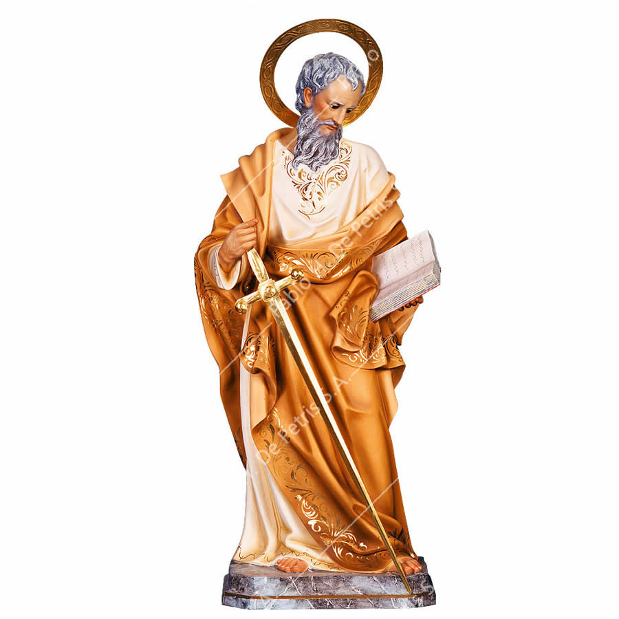 Imagen realizada en pasta madera y pintada a mano al óleo, luciendo símil madera. Ojos de cristal. Aureola de bronce.