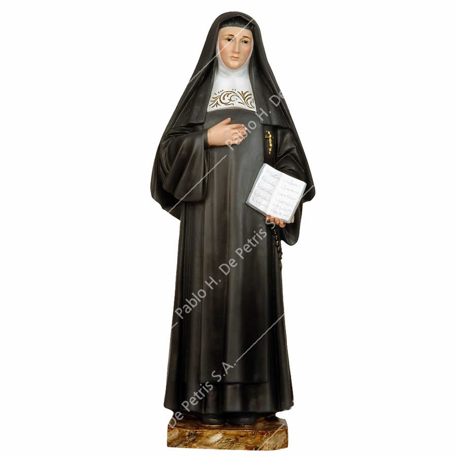 Imagen realizada en pasta madera y pintada a mano al óleo en sus colores tradicionales. Ojos de cristal. Aureola de bronce.