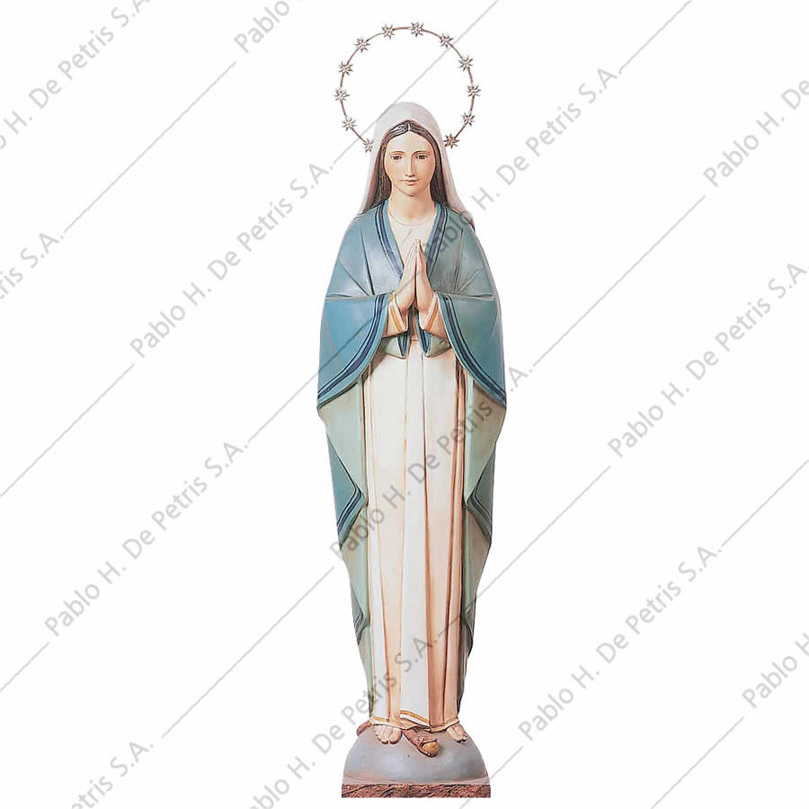 Imagen realizada en pasta madera y pintada a mano al óleo en sus colores tradicionales. Ojos de cristal. Aureola de bronce.