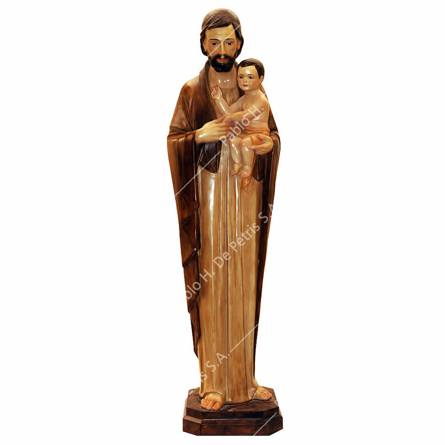 Imagen realizada en pasta madera y pintada a mano al óleo en sus colores tradicionales. Ojos de cristal. Aureola de bronce.