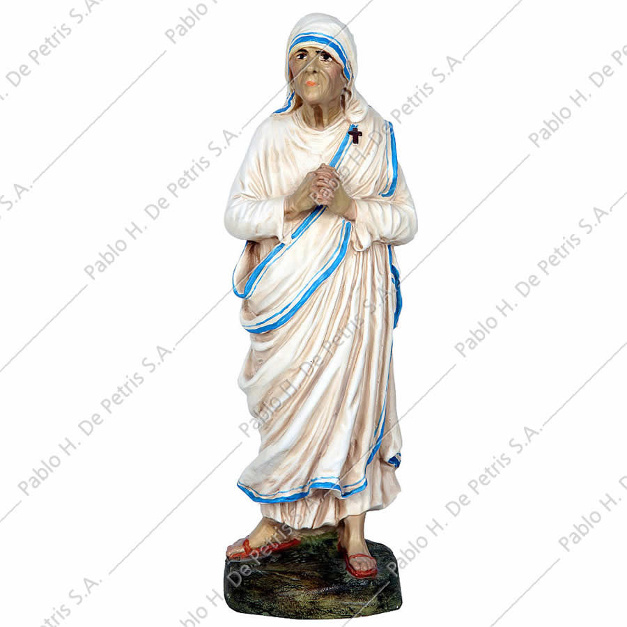 Imagen realizada en pasta madera y pintada a mano al óleo en sus colores tradicionales. Ojos de cristal. Aureola de bronce.