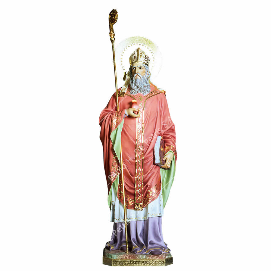 Imagen realizada en pasta madera y pintada a mano al óleo en sus colores tradicionales. Ojos de cristal. Aureola de bronce.