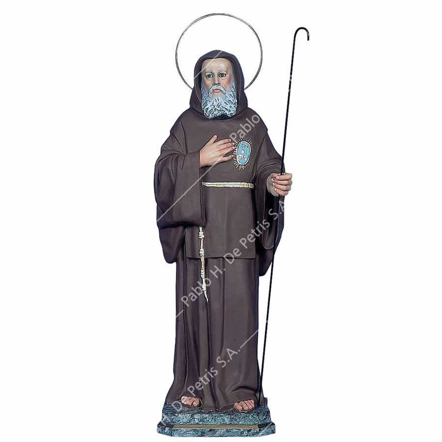 Imagen realizada en pasta madera y pintada a mano al óleo en sus colores tradicionales. Ojos de cristal. Aureola de bronce.