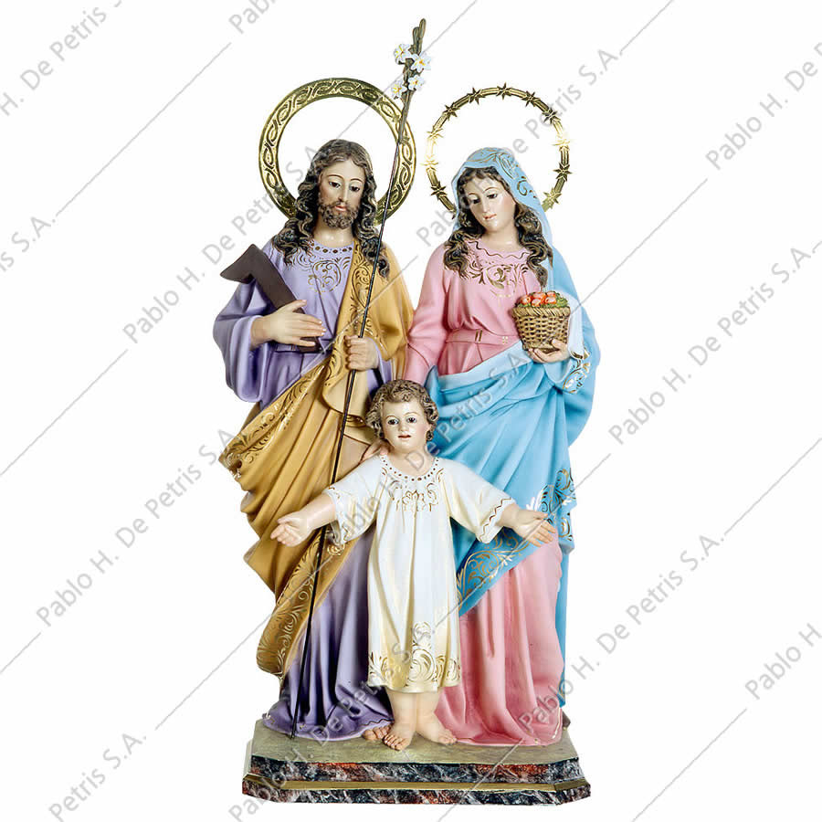 Imagen realizada en pasta madera. Pintada a mano al óleo en sus colores tradicionales. Ojos de cristal. Aureola de bronce.