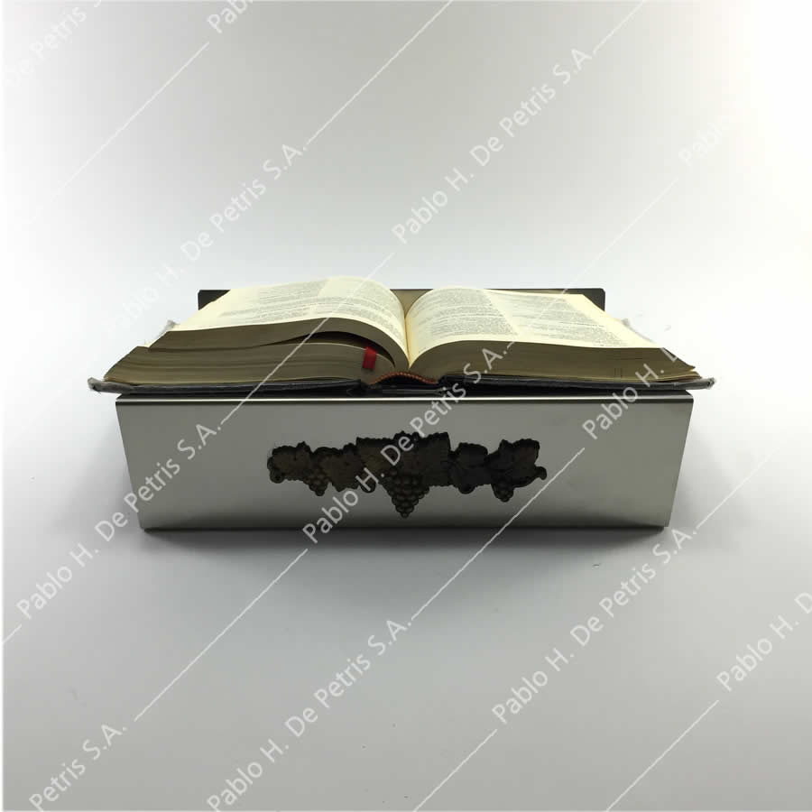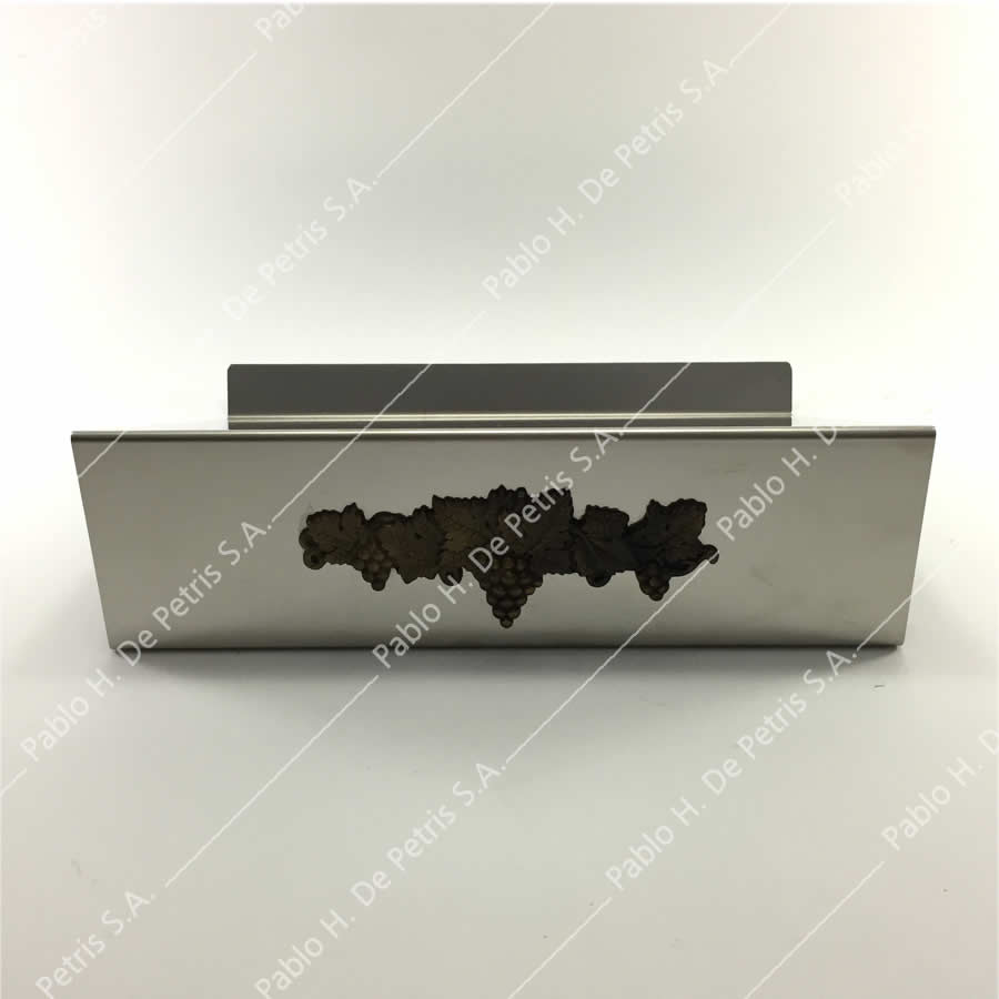Realizado en acero inoxidable con aplique en bronce pulido.