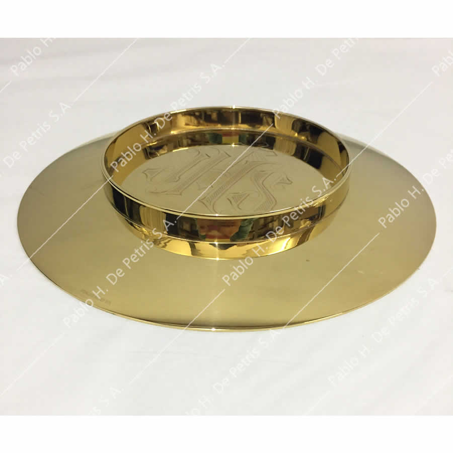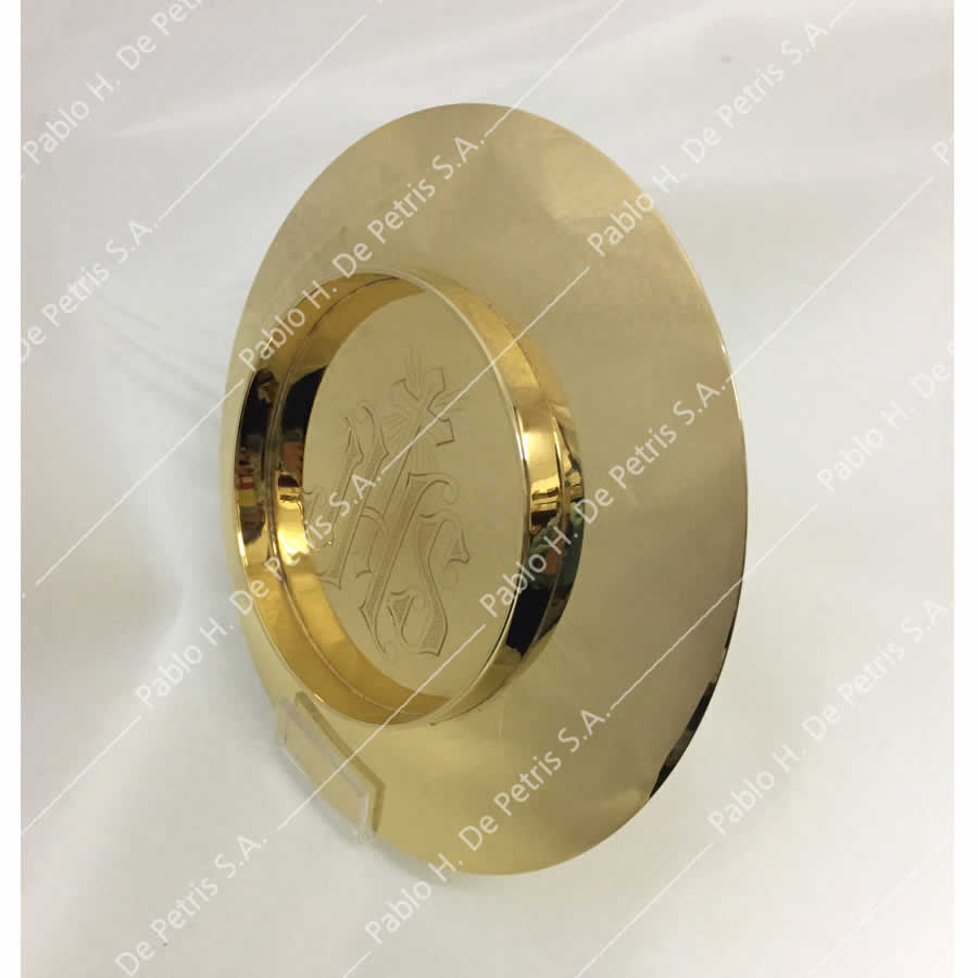 Patena realizada enteramente en plata. Lleva baño de oro.