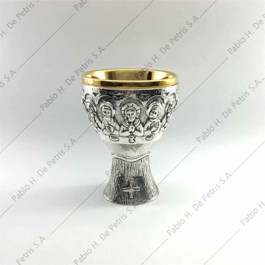 Cáliz realizado en bronce con baño interior de oro y exterior de plata. Motivo de la Última Cena.