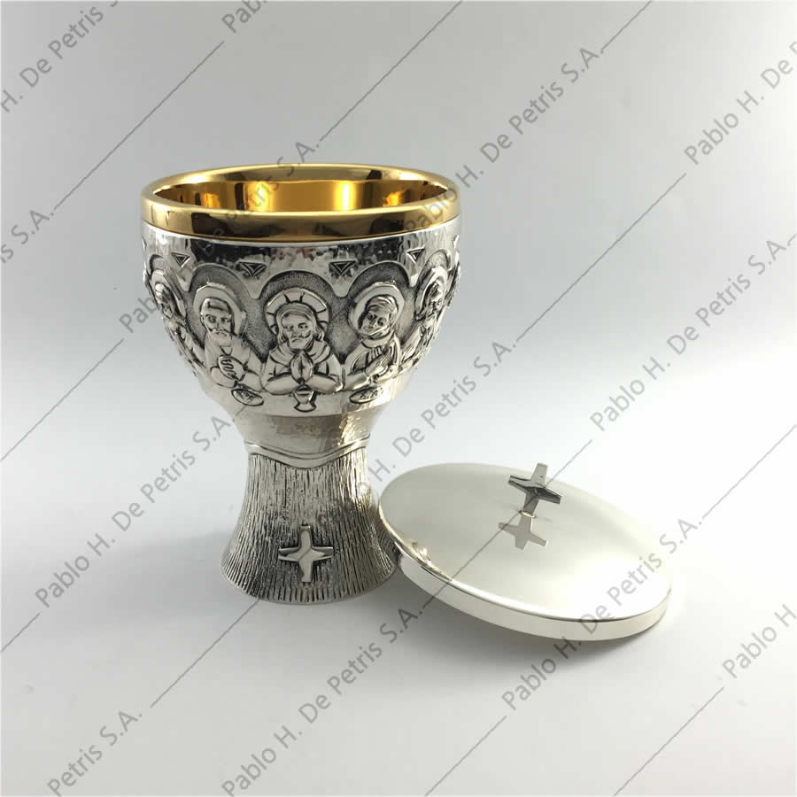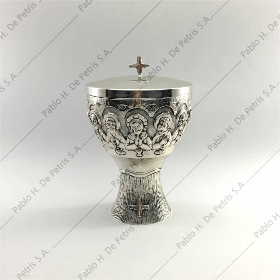 Copón realizado en bronce con baño interior en oro y exterior de plata.