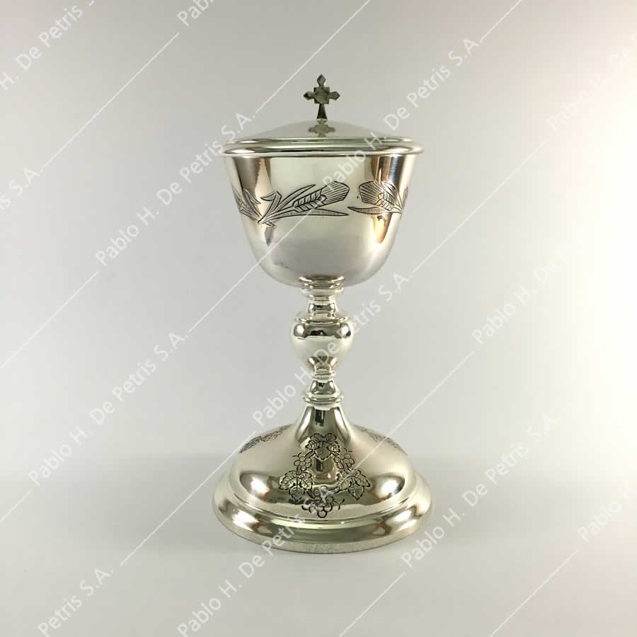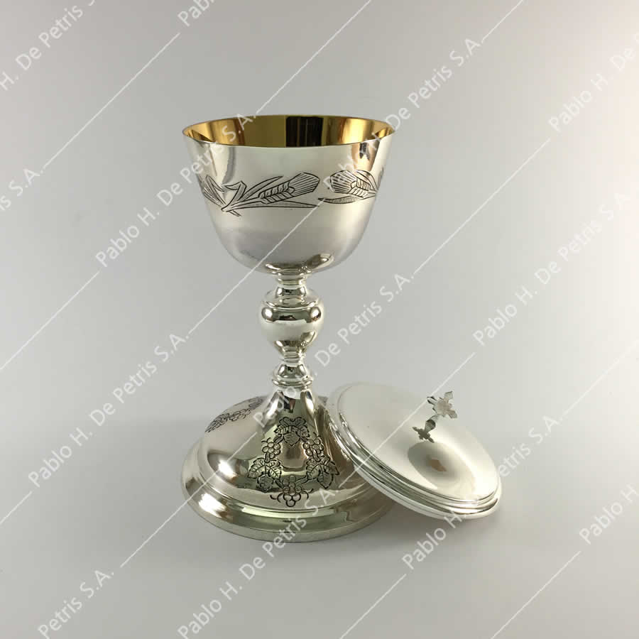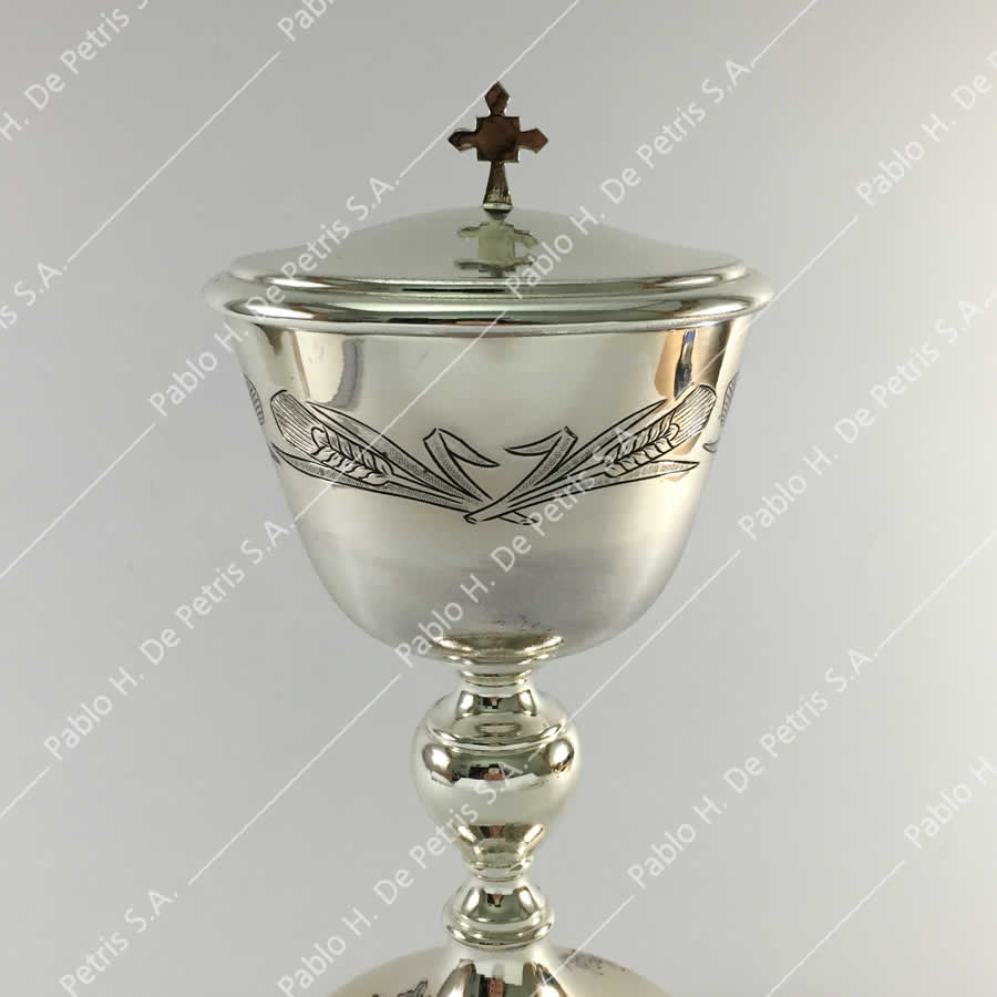 Copón realizado en bronce con baño interior en oro y exterior en plata.