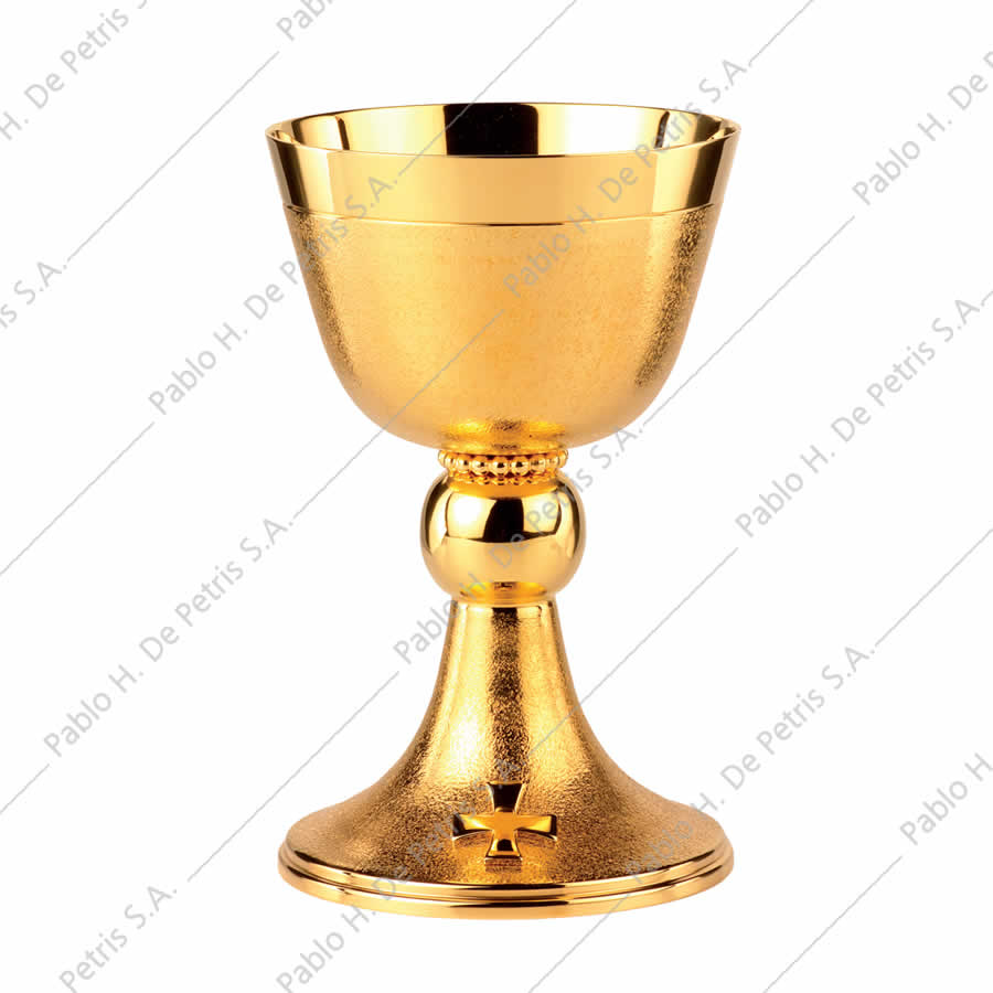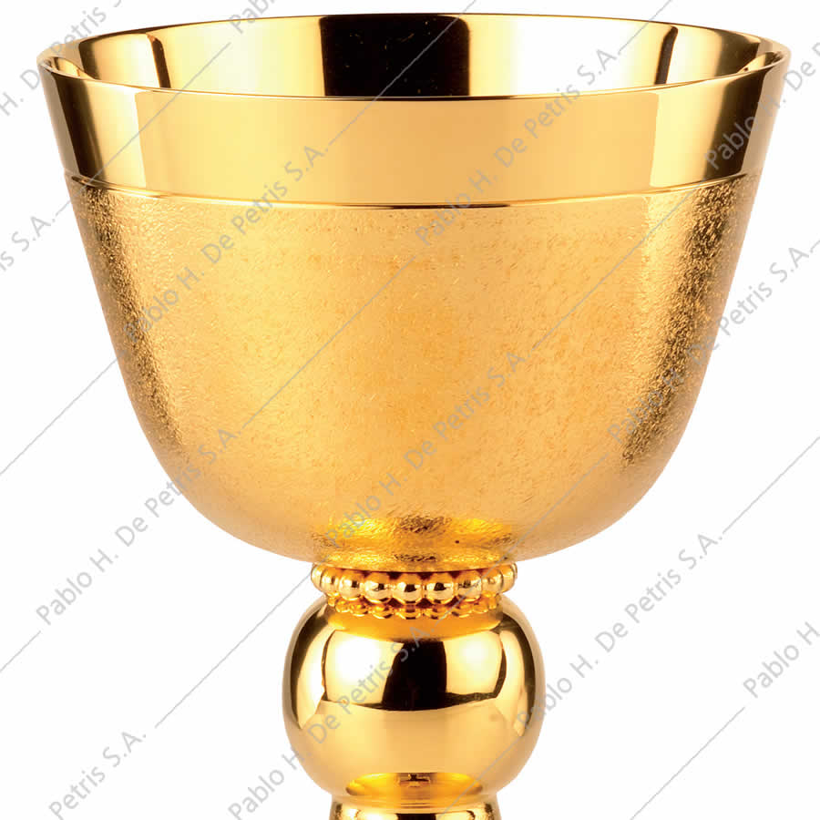 Cáliz realizado en bronce con baño interior y exterior de oro. Acabado de la copa texturado.