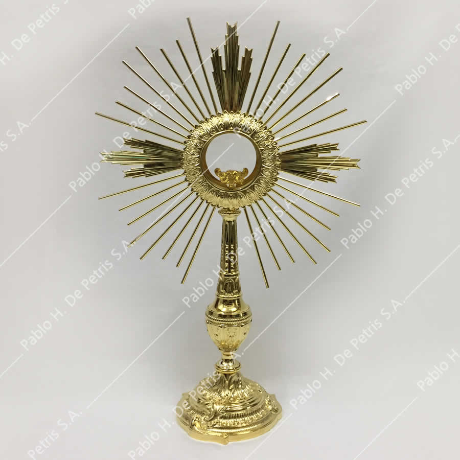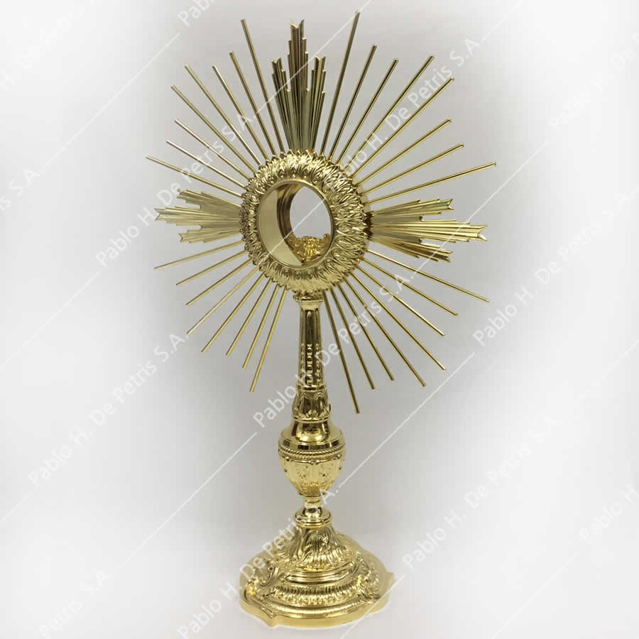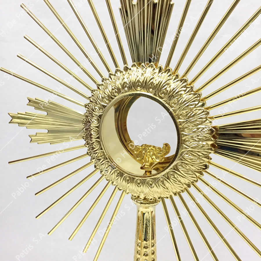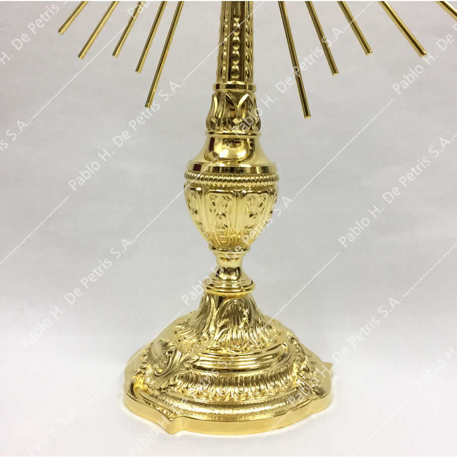 Realizada en bronce bañada en oro. Viril bañado en oro, removible para poder transportarlo.