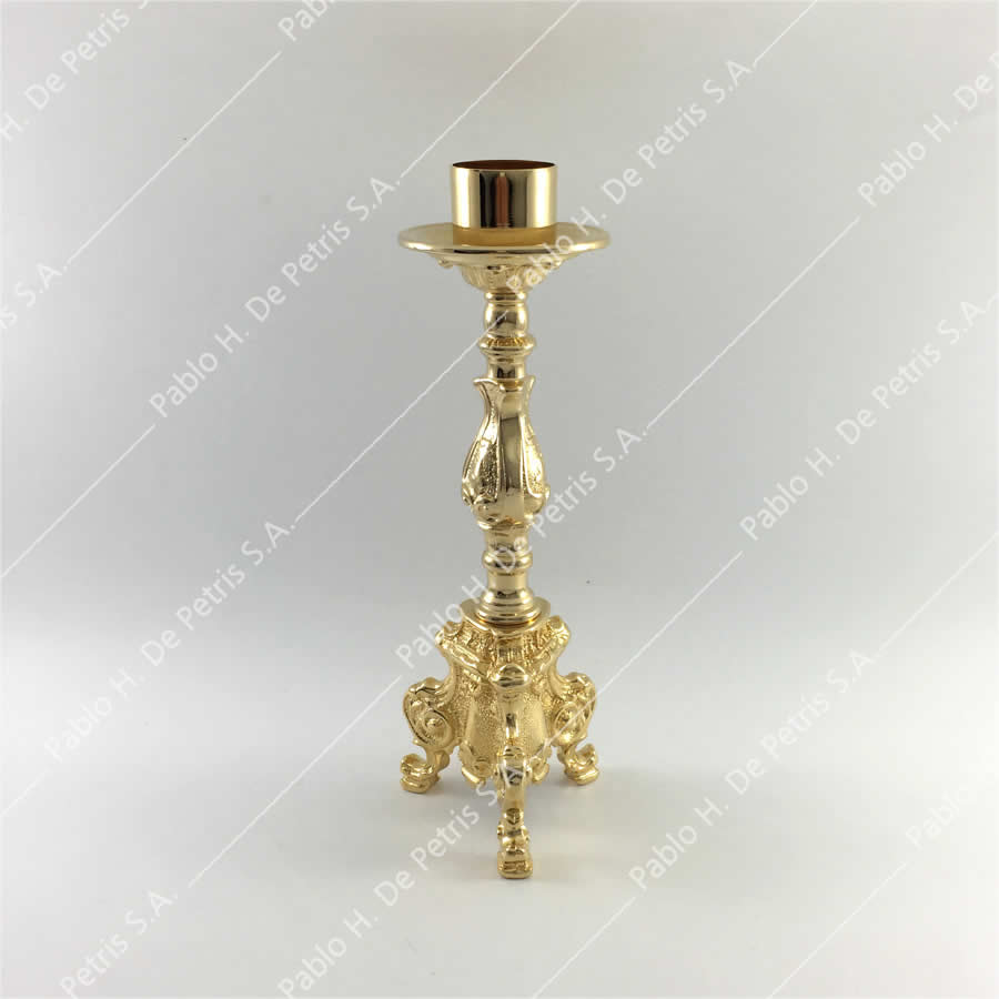 Candelero de estilo barroco realizado en bronce bañado en oro.
