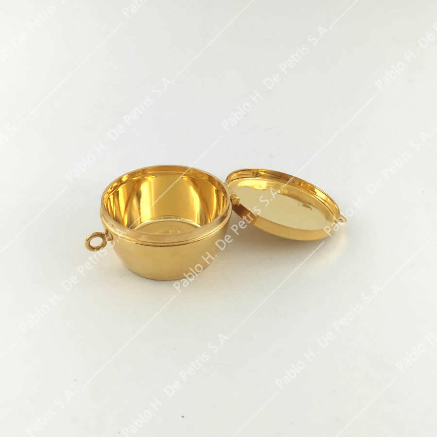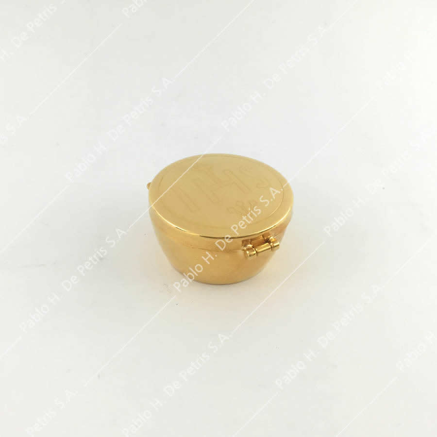 exterior de oro. Tapa cincelada con las letras IHS. Con bisagra.