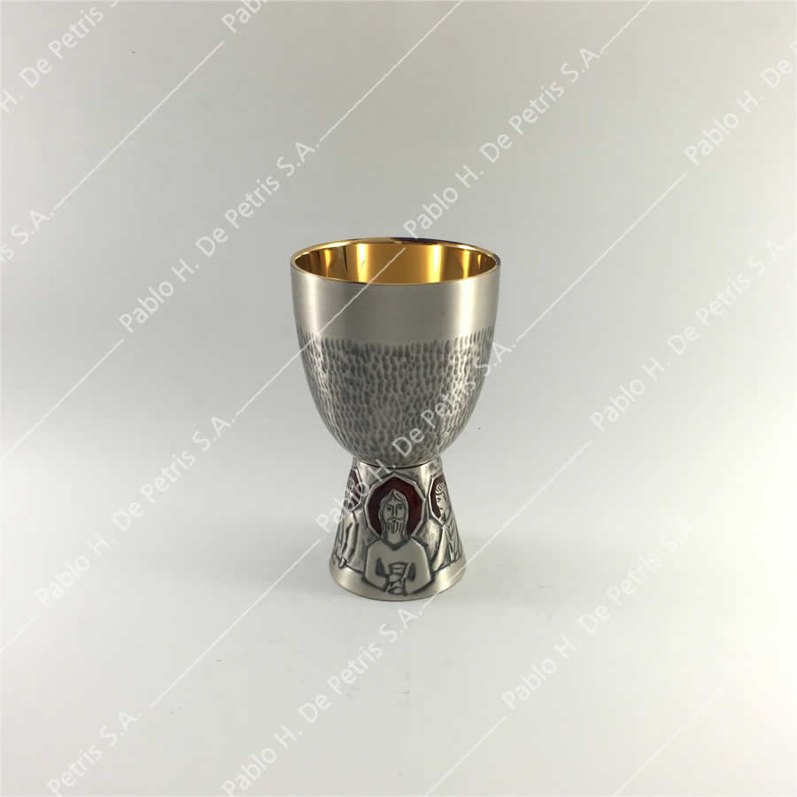 Realizado en bronce con interior bañado en oro y exterior bañado en plata en dos tonos. Ornamentación cincelada y trabajada con esmaltes orneados.