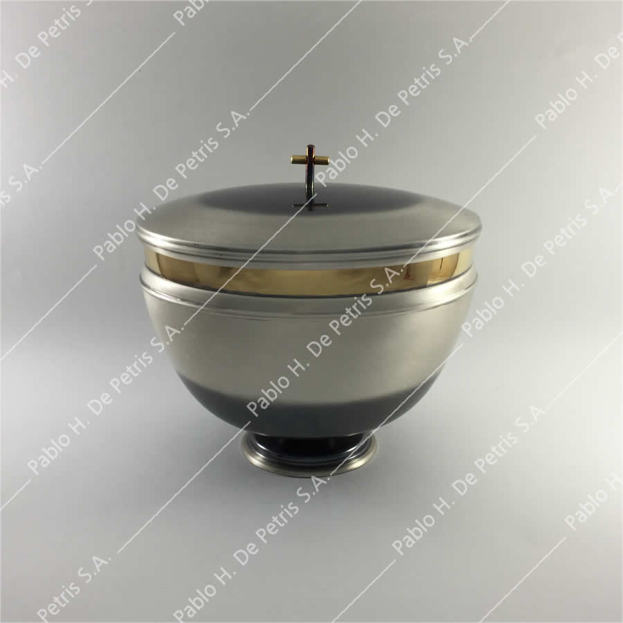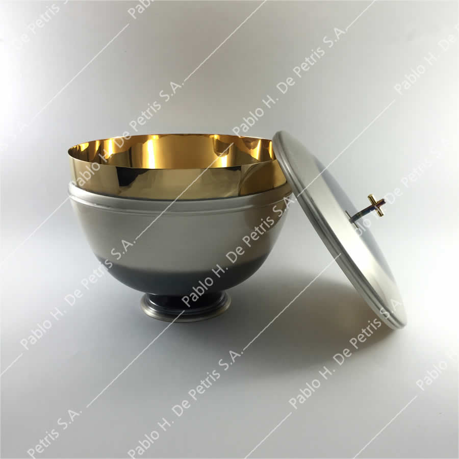 Realizado en bronce con interior bañado en oro y exterior bañado en plata en dos tonos.