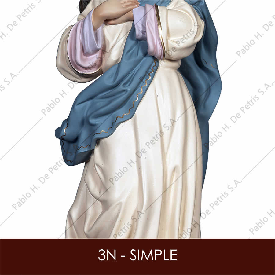 - 3N - Simple - Decoracón basándose en tonos lisos. En los bordes del manto y túnica un simple filete de purpurina. Las peanas decoradas en un solo color y barnizadas.