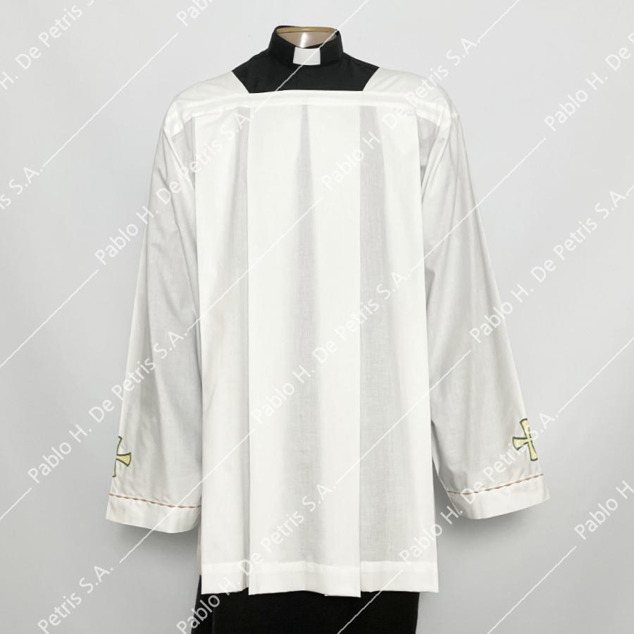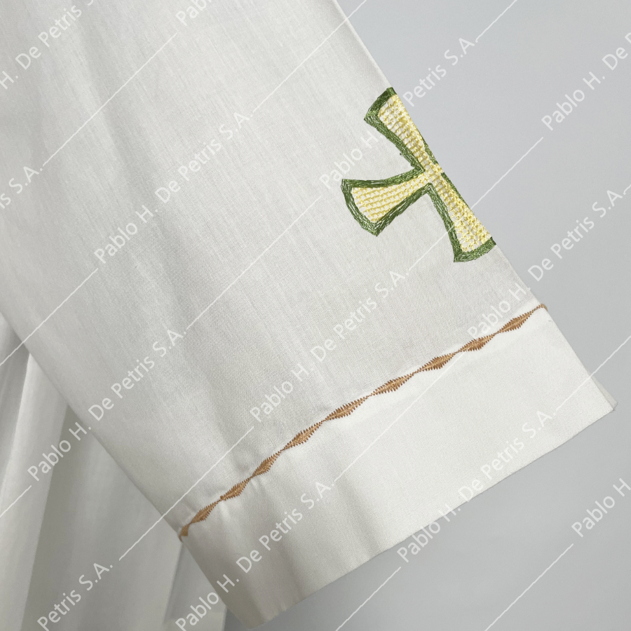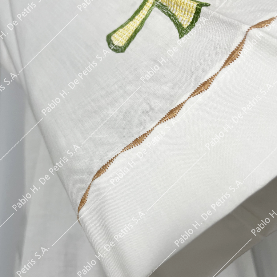 Realizado en mezcla de tejido natural y sintético. Ornamentación bordada en sus extremos.